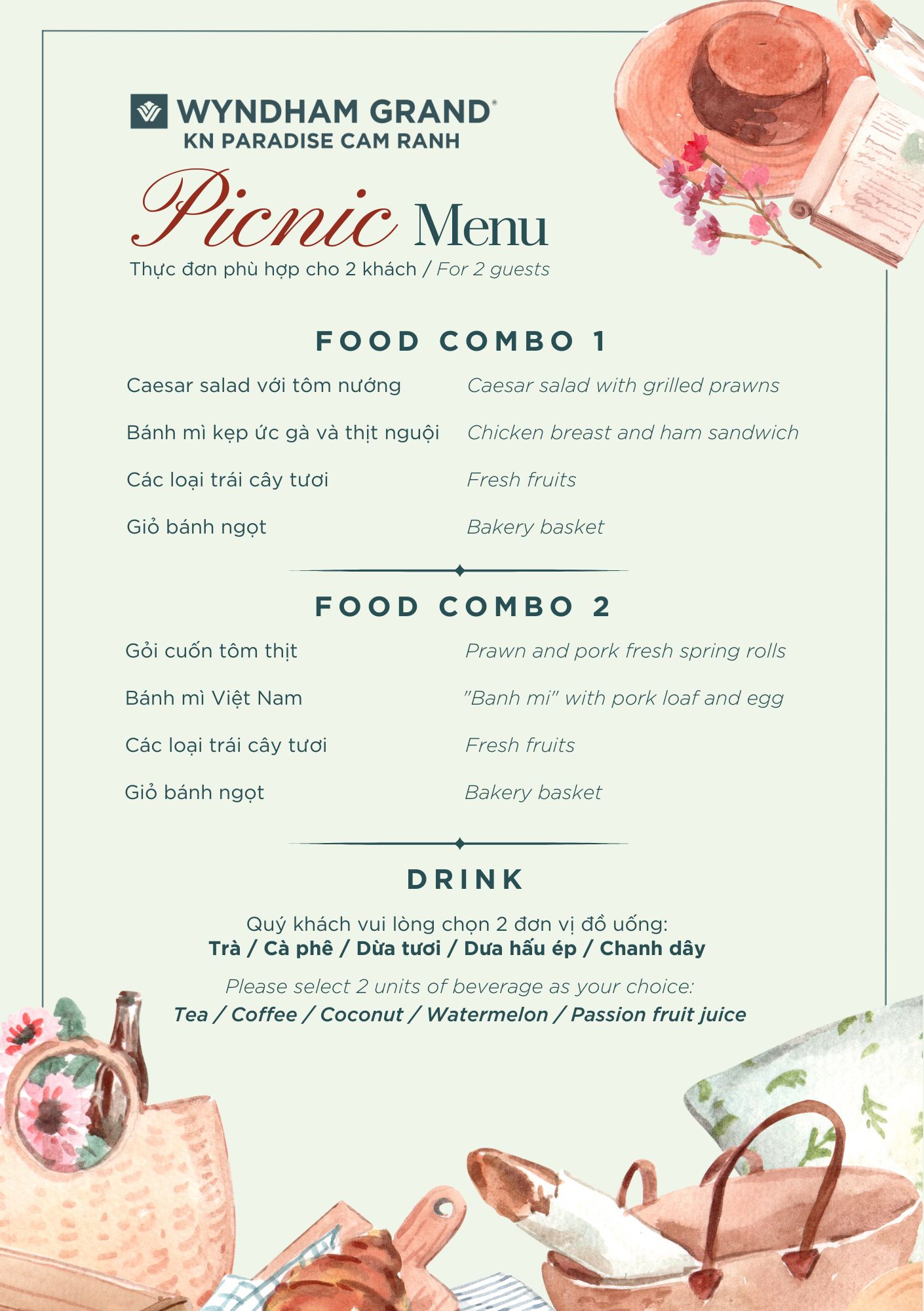 Giá đã bao gồm thuế GTGT và phí phục vụ. Dịch vụ áp dụng từ 02 khách trở lên.